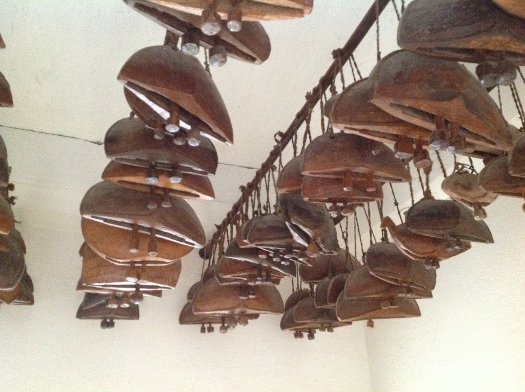 A special gift to any intrepid traveler who can identify the artifacts on the ceiling here at the Devi Gargh palace seen in the photo below: