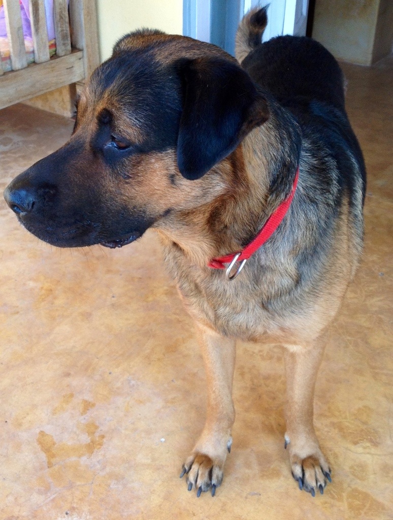 Here is Marlon Brando. We met this handsome guy at Sur La Mer where he lives with his family on the waterfront. This dog runs towards fireworks, opens two layers of double doors with ease, and watches over his two an a half year old grandniece with undivided devotion. Our host Aneel ‘s favorite film is The Godfather and his wife Nan has the theme from the movie on her mobile phone’s ringtone. Marlon Brando is half Alsatian and half Rottweiler and all L O V E.