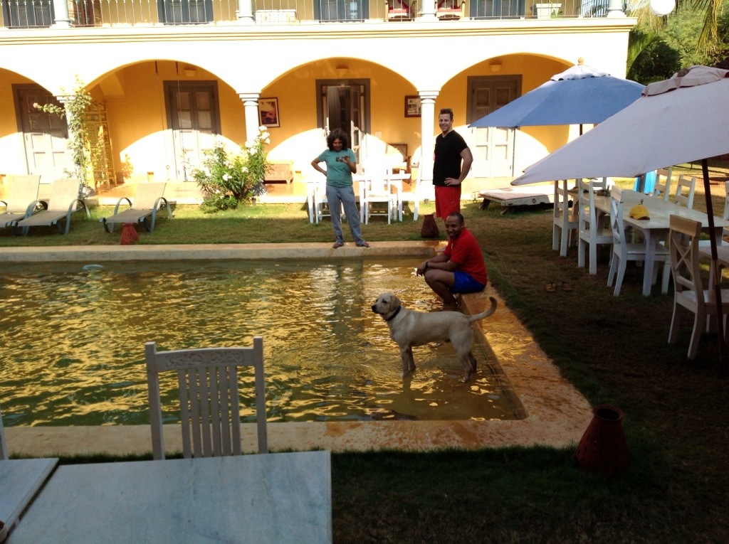 Scott’s heart is so huge. Today we met some more people that have become instant friends. Caleb, Matt, Marika and her dog Yago were all at the pool this morning when we came out for breakfast. Yago was frolicking in the pool for his first time.