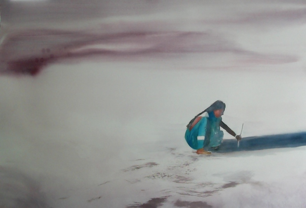 Our friend JB has been visiting with us in Goa taking gorgeous photographs like this one on our local beach. He sent it back to his talented girlfriend Maggie Hanley on Whidby Island. Look at the watercolor painting Maggie did below. I can tell you where to buy art supplies in Goa, Maggie, if you decide to come join us for the holidays! 😉
