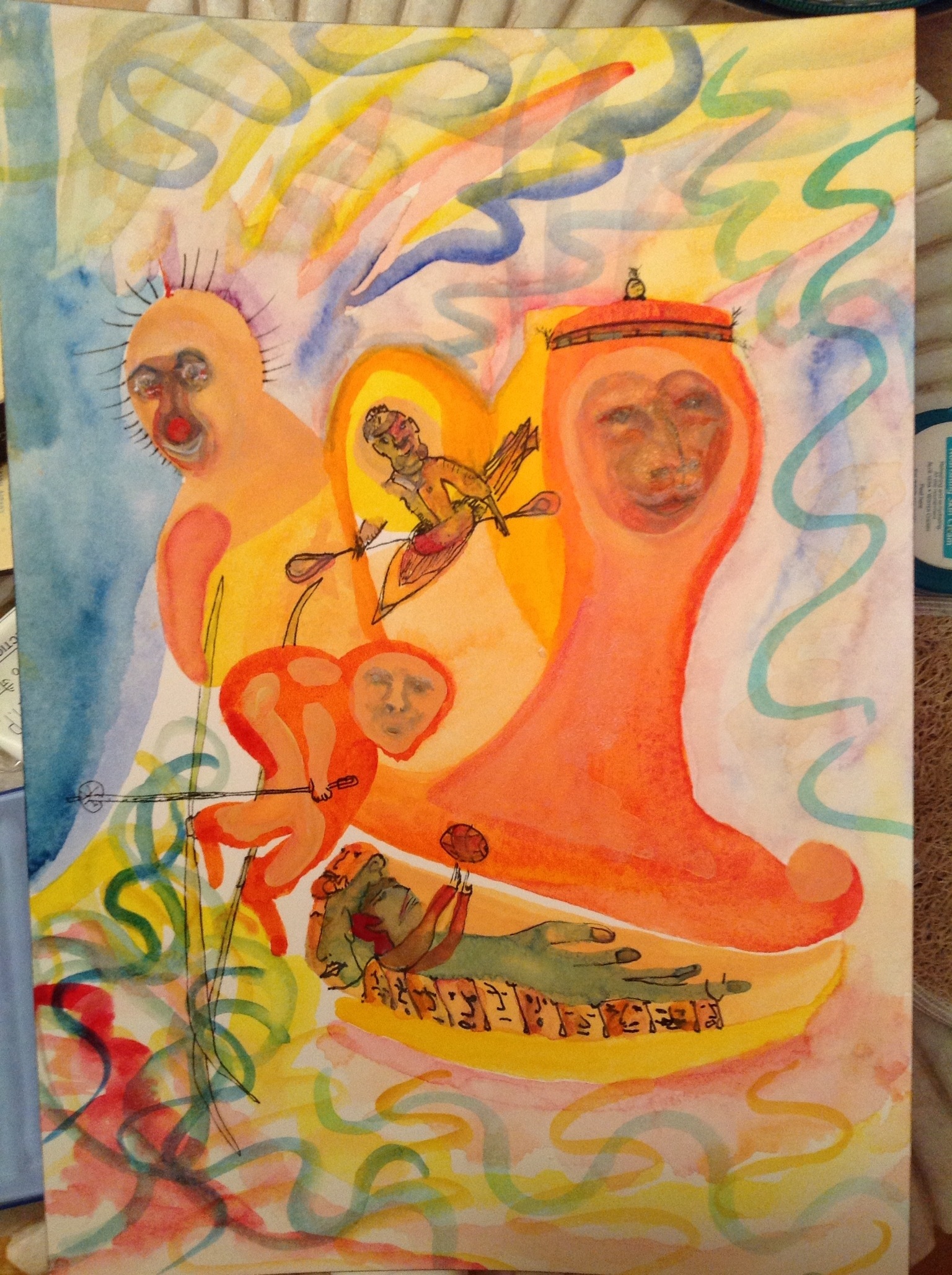This painting completed in a few days while dealing with the chaos of preparing for the ambulance and then climbing mount everest the very next day. I don’t think Scott’s ever done such a densely color filled work so this represents a new direction for his art.
