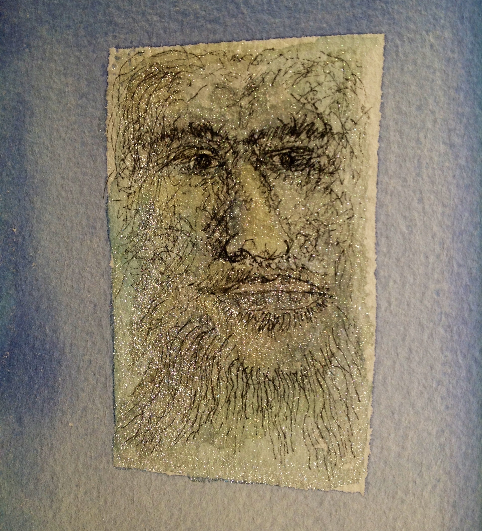 When I returned from my spa day I found Scott happily painting under an alter ego. The new paintings are representational faces and he felt compelled to sign them Scotto Morgani and date them 1603.