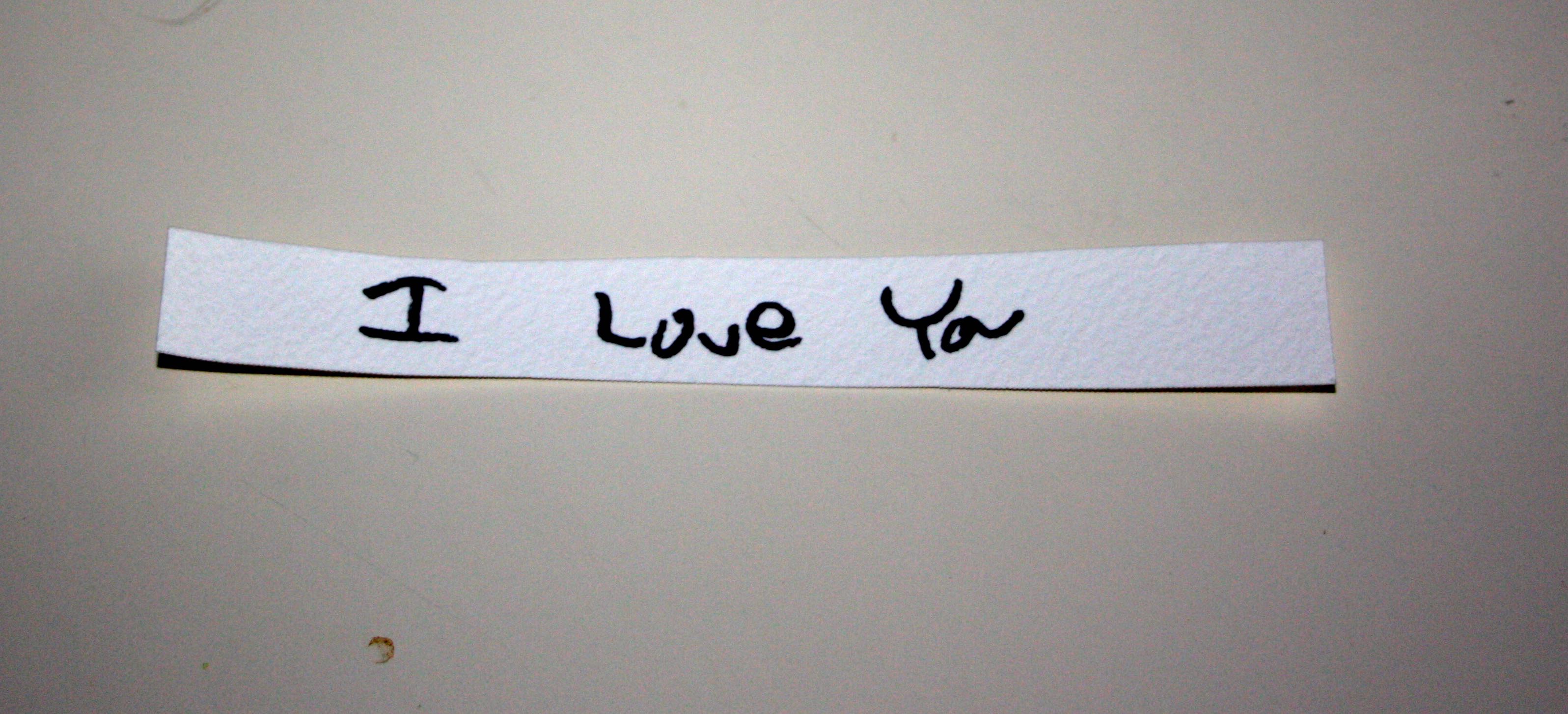 I hesitated to share this one on the blog. Partly because I sense that I have already pushed the boundaries of credulity with so many syncromystic moments…partly because I thought maybe this one might be meant only for me to savor alone. I can’t do that. It’s too good to keep to myself: on January 1, 2015 as I was putting away special glasses that were used for the New Year’s Eve dinner party I made for two friends, I spied a familiar white skinny strip of heavy watercolor paper tucked into the side of the cabinet space. My heart skipped a beat. Surely I had already discovered all of Scott’s pre-India love notes by now? How could I possibly hope to find one more I love you? And what are the chances to be home sixteen months now and not to find it until the first day of this particular brand new year? I stood in front of the cabinet for several minutes before daring to reach in. This one is for me. But now this one is for you, too. It’s for all of us. We are all one. May we all have a very happy new year!